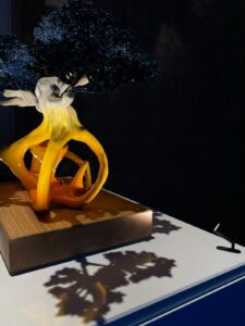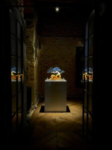 Through complex digital design processes, the artist constructs biomorphic forms that recall evolving organisms, cellular structures, or architectures emerging from imaginary landscapes. The sculptures thus acquire an almost living presence, capable of transforming space and suggesting new ways of perception.